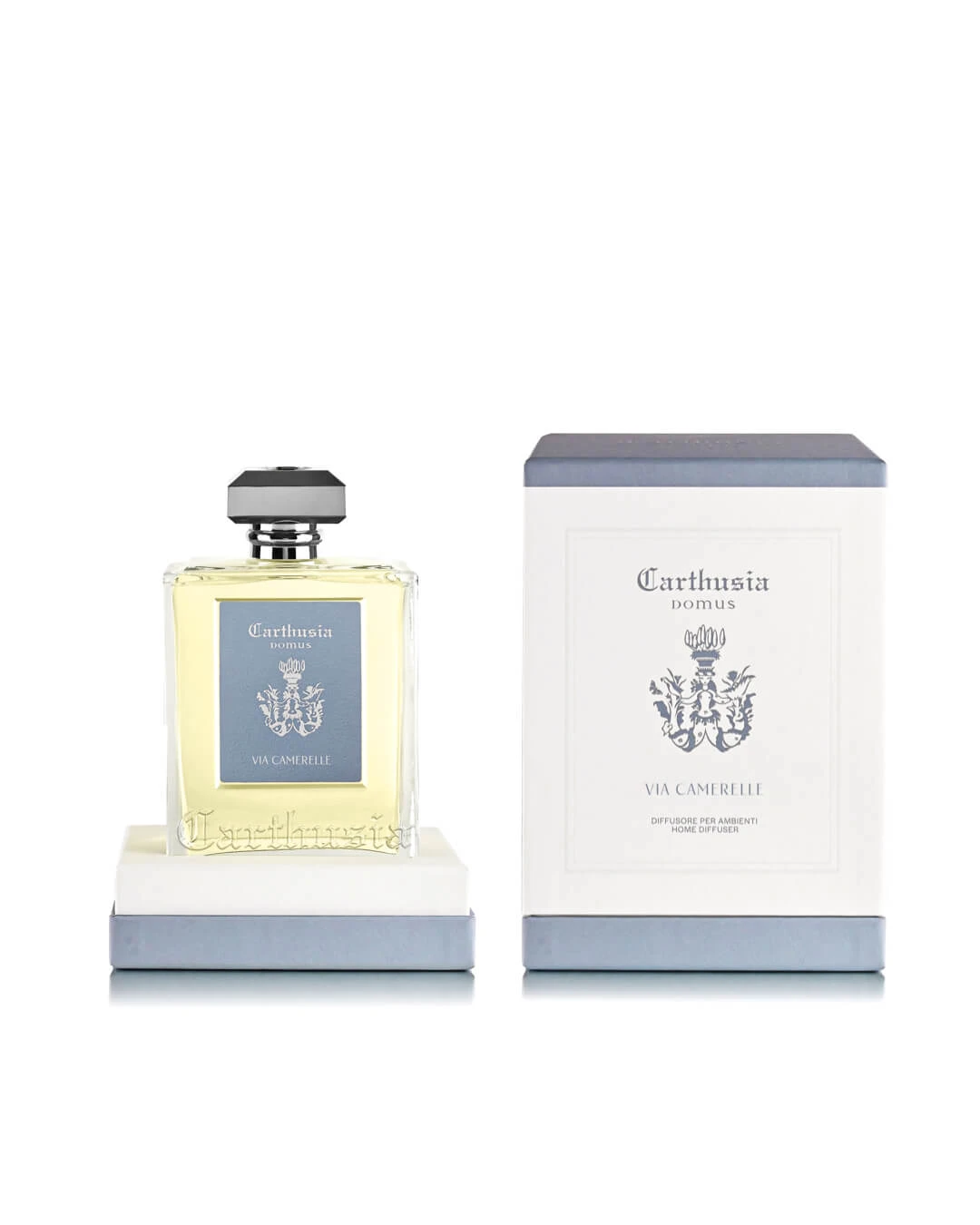 Una Collezione che vede i Diffusori completamente ridisegnati con la forma dell’iconico flacone degli Eau de Parfum Carthusia.