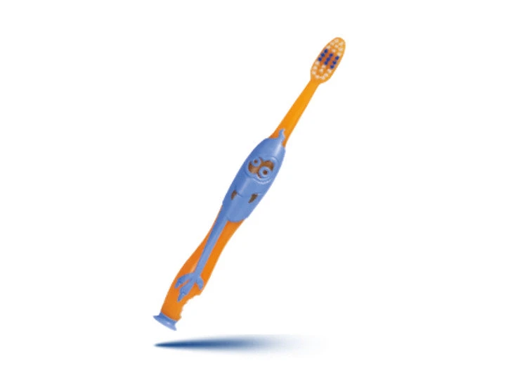 La spazzola per bambini dai 2 ai 6 anni. Uno spazzolino adatto ai denti da latte: taglia fili concavi per i denti da latte curvi. Setole morbide e arrotondate per rispettare i denti e le gengive del tuo bambino. Fili colorati per insegnare al tuo bambino come dosare il dentifricio da mettere sullo spazzolino. Un manico colorato e originale con ventosa per incoraggiare il tuo bambino a lavarsi i denti