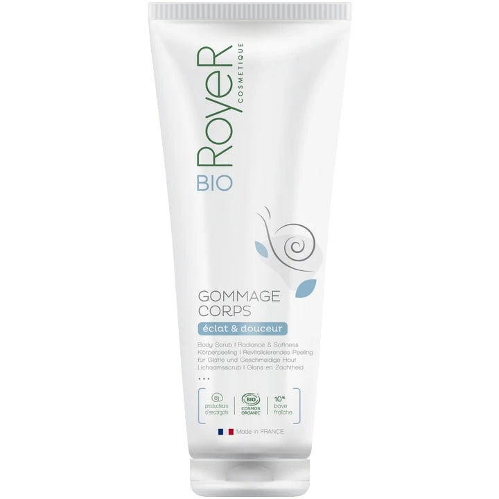 Scrub corpo esfolia delicatamente e rimuove efficacemente le cellule morte. Il nostro scrub corpo rispetta la barriera cutanea.| Una volta alla settimana Tutti i tipi di pelle Purifica e leviga la pelle 10% di bava pura Certificato BIOLOGICO | PRODUTTORE DI BAVA DI LUMACA BIOLOGICA COSMO COSMETICI BIOLOGICI BIOLOGICI 100% raccolti in Vandea Prodotto in Francia certificato da Ecocert Greenlife certificato da Cosmebio Bava biologica e fresca – 200 ml – Cura del corpo