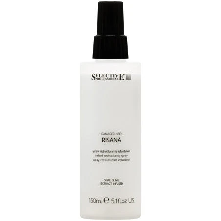 Selective Professional Damaged Hair Risana Spray è uno spray bifasico adatto ai capelli danneggiati e stressati ad effetto ristrutturante istantaneo. La sua formula leggera non necessita risciacquo è arricchito con bava di lumaca, proteine del riso, glicerina e proteine del grano che apportano nutrizione profonda donando corposità alla fibra capillare. Permette di districare con facilità e aiuta a rispristinare le zone danneggiate dei capelli sensibilizzati da trattamenti e li rende docili, luminosi e vitali. Non necessita risciacquo.