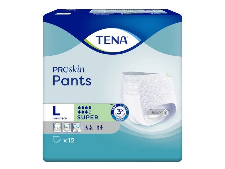 Tena Proskin Pants Intimo Assorbente Super Taglia L sono biancheria intima monouso progettata per uomini e donne che soffrono di incontinenza. Offrono una tripla protezione: anti-perdite | anti-odore grazie alla tecnologia Odour Neutralizer | anti-umidità | Sono dotati di un materiale traspirante e di un materasso morbido e sottile per un comfort ottimale. Tripla protezione per la salute della pelle La Tripla protezione mantiene asciutta e garantisce morbidezza e sicurezza contro le perdite per aiutare a preservare la salute della pelle.| Tecnologia di assorbimento FeelDry Advanced™ Il velo superficiale assorbe istantaneamente e blocca il liquido, lasciando la pelle asciutta.| Doppia zona di assorbimento per una freschezza e una protezione ottimali Una volta indossato, il nostro materasso sottile e morbido forma due cavità di assorbimento, note anche come doppia zona di assorbimento, assorbendo e bloccando il liquido in modo efficace, lasciando la pelle asciutta.| Materiali traspiranti I materiali traspiranti della sensazione tessile consentono all’aria di circolare per una pelle sana e un maggiore comfort.| Dermatologicamente testato I prodotti tena ProSkin sono dermatologicamente testati e testati per garantire la loro efficacia e morbidezza.Neutralizza gli odori Neutralizza gli odori istantaneamente e continuamente.| Barriere anti-perdita morbide Barriere anti-perdita morbide per una maggiore sicurezza.Il programma tena Protects, passo dopo passo, ridurrà la nostra impronta di carbonio in Europa del 50% entro il 2030, per un migliore impatto sul pianeta. Proteggere le persone è sempre stata la priorità di tena, e anche noi abbiamo la responsabilità di proteggere il pianeta.Il marchio Nordic Swan è una delle certificazioni ambientali più rigorose al mondo, che valuta l’impatto ambientale di un prodotto nelle fasi chiave del suo ciclo di vita.